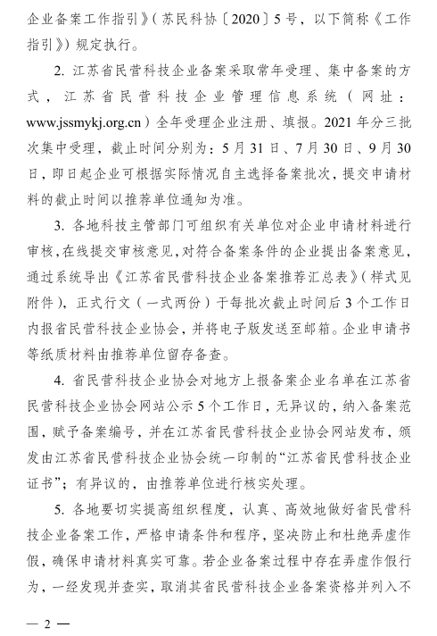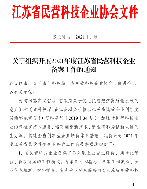 关于组织开展2021年度江苏省民营科技企业备案工作的通知